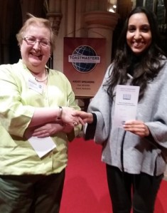 Evaluating Table Topics, Nicola M for said she really liked Anastasia‘s use of quotes, with drama and humour. Chris C stood with back to audience for as long as he could and had procrastinated with the food preparation. Reshmi B had a complete story and Hira S had a good opening body and conclusion to her talk. David D had used procrastination extensively. Nikita P as Timer confirmed all speakers were in time.