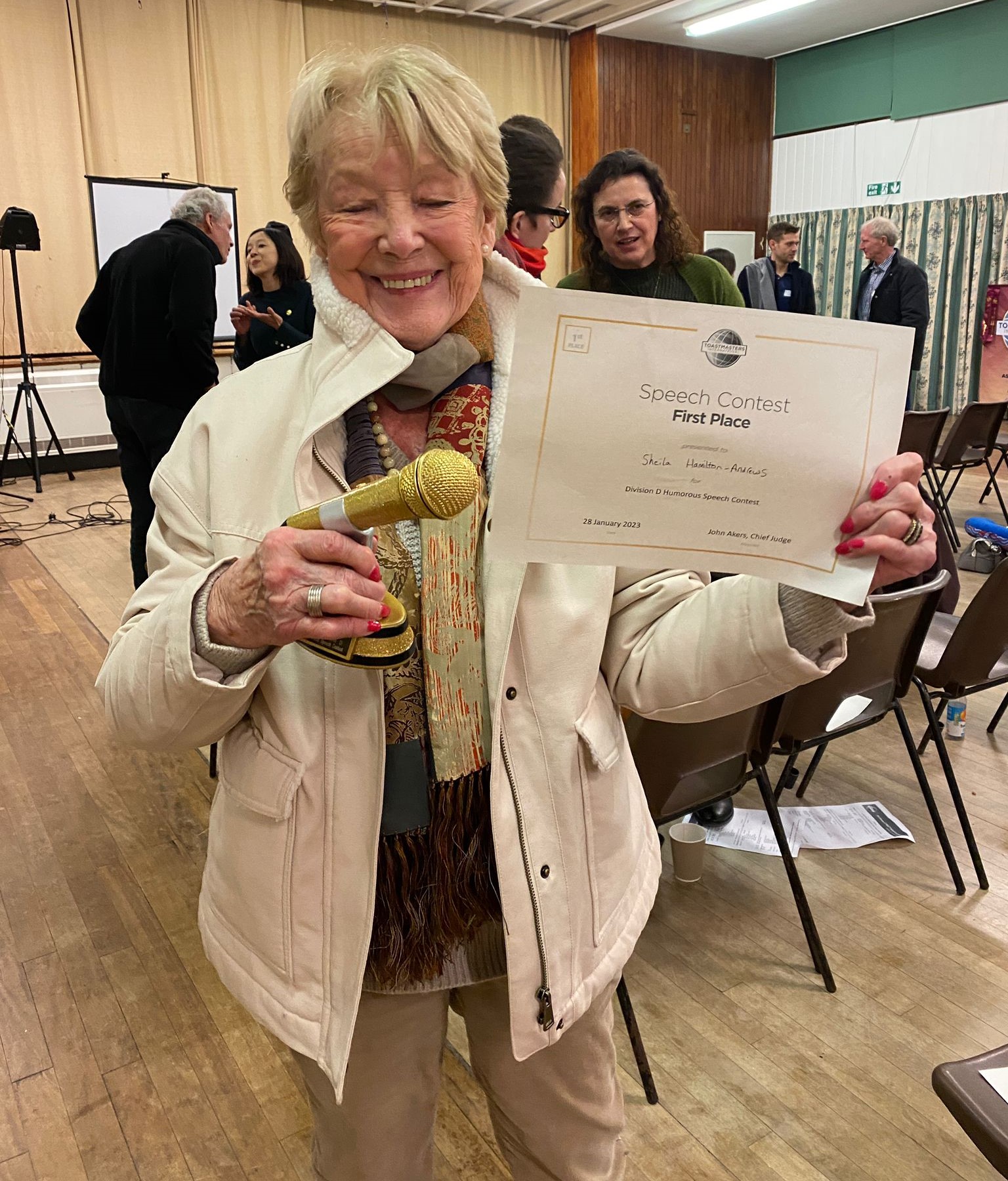 We’re delighted that Sheila Hamilton Andrews’ humorous speech about graffiti got her a place in the finals this May in London. Amanda Bouch competed in the Evaluation contest to get through.